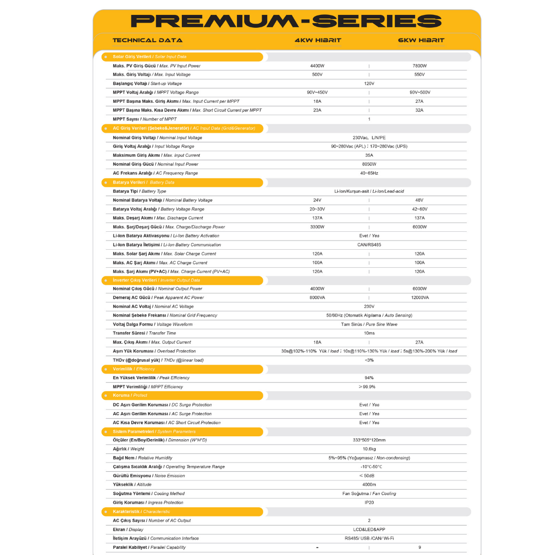 Mexxsun Premium 48V 6kW Tam Sinüs Akıllı İnverter(Paralel /Wi-Fi/ Dual Output)