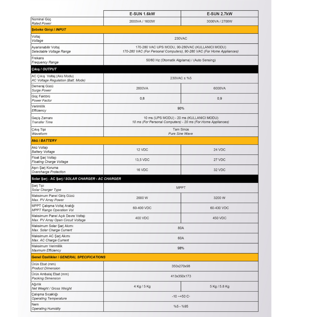Sako 1.6kW / 12V Tam Sinüs Akıllı İnverter Voc 30-400 VDC