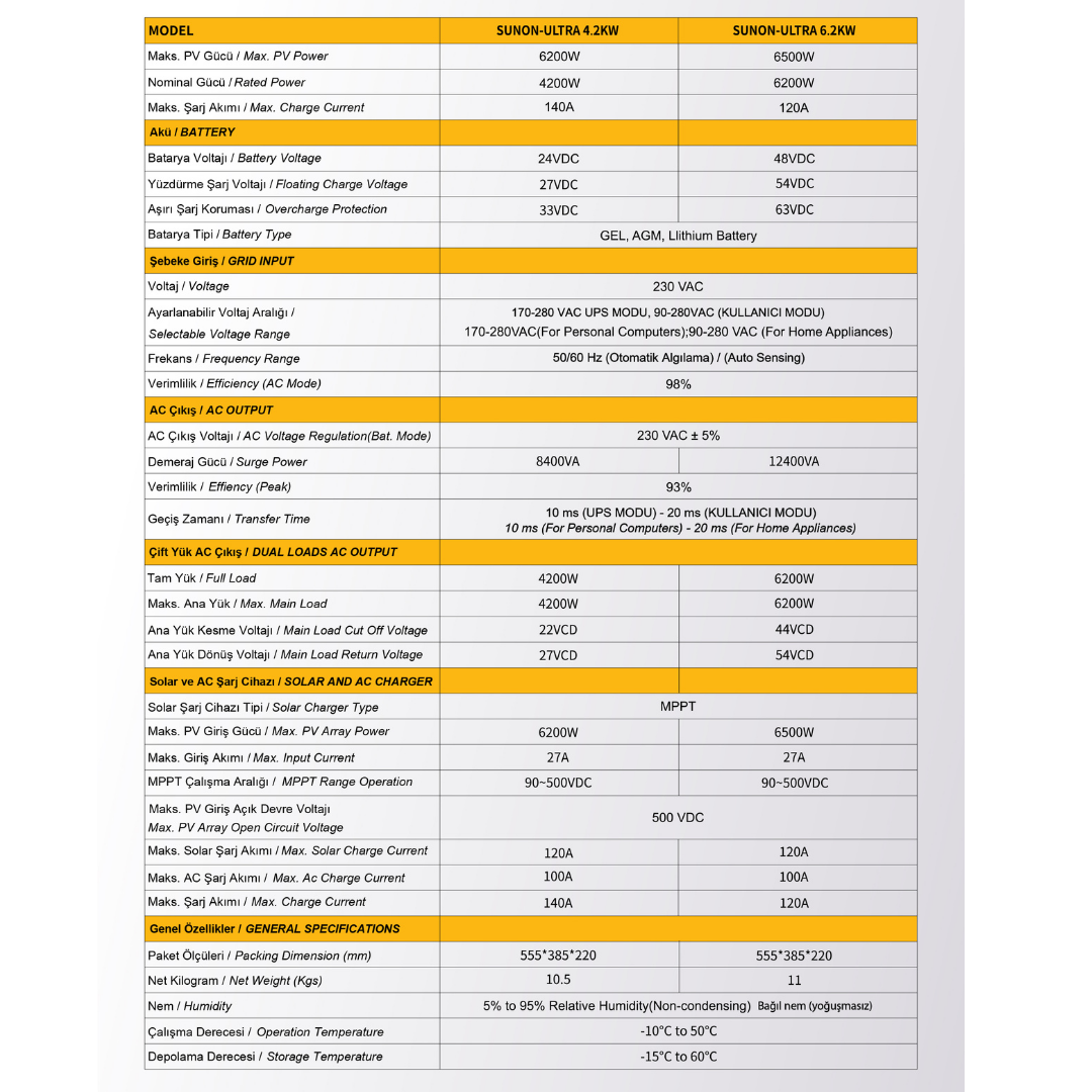 Sako Sunon Ultra 4.2KW Tam Sinüs Akıllı İnverter 24V 4200W